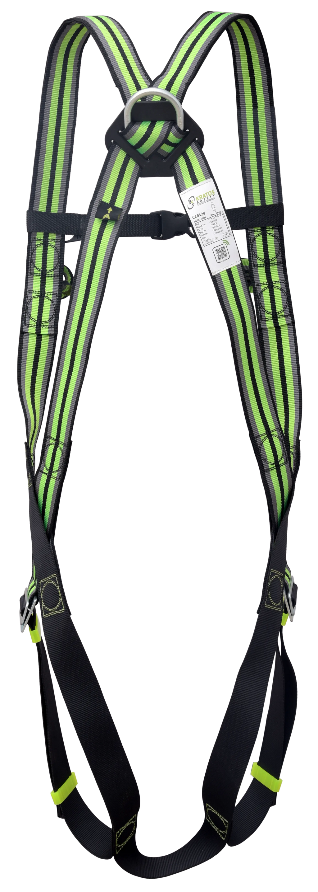 - Ausstattung: 1 dorsaler D-Ring, 2 sternale textile Auffangösen für Auffangsysteme