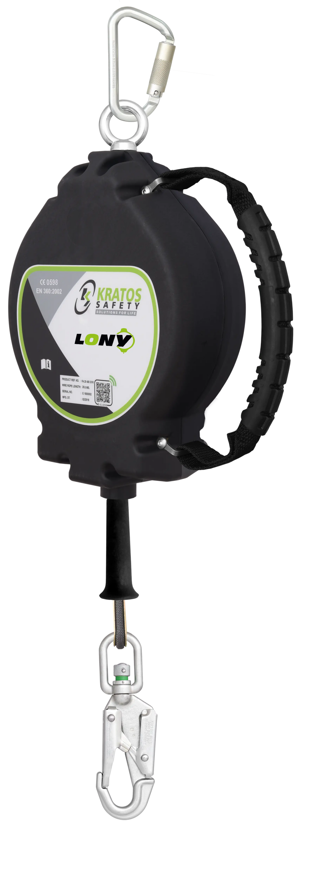 LONY Synthetisches Seil, Absturzsicherung mit automatischem Rückzug 18 m bietet sichere Höhenarbeit mit komfortabler Handhabung. Das System nutzt ein Aramid-Kunststoffseil und ein robustes, hochfestes Polymergehäuse. Mit Tragegriff und einem Spezialgriff ist der Transport bequem und sicher, selbst bei längeren Einsätzen. Der automatische Rückzug sorgt dafür, dass das Seil sauber einzieht und stets einsatzbereit bleibt.