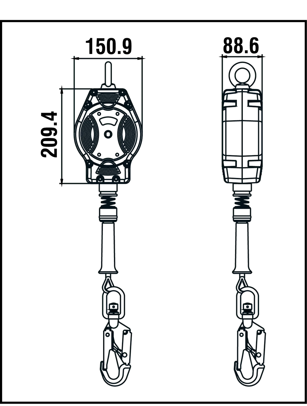 HELIXON Stahldrahtseil Höhensicherungsgerät mit automatischem Rückzug 7 m, Nur für den vertikalen Gebrauch