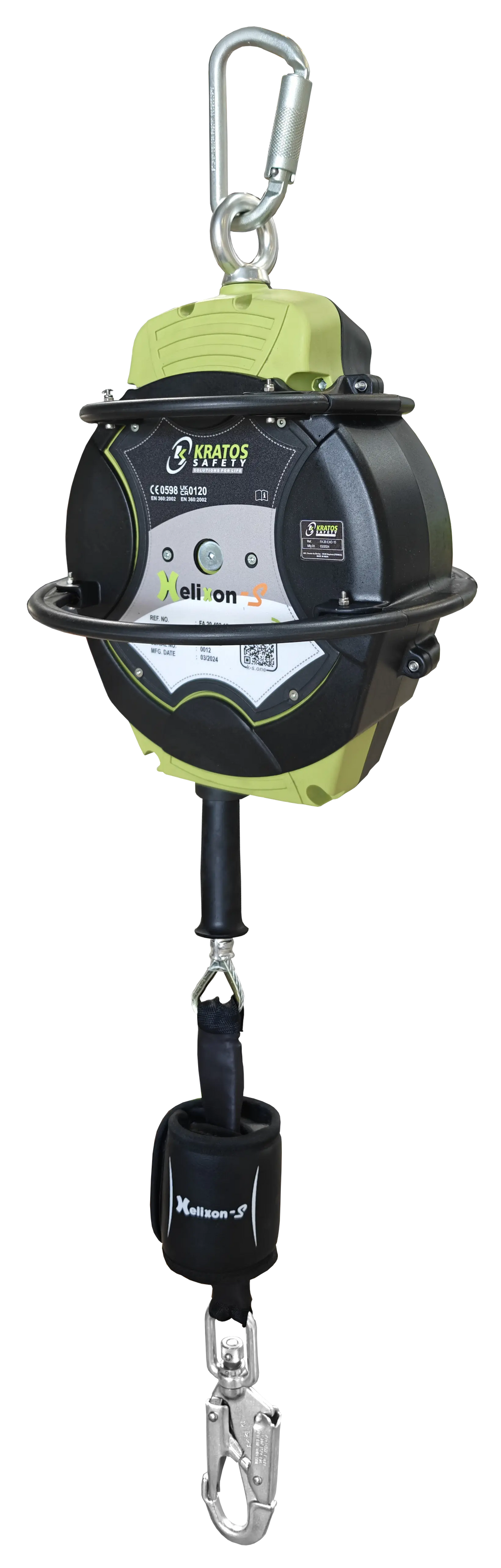 HELIXON-S Absturzsicherung mit automatischem Rückzug Polymergehäuse an Drahtseilaus verzinktem Stahl 15 m - speziell für scharfe Kanten -bereits ausgerüstet mit FA 20 EXO 15