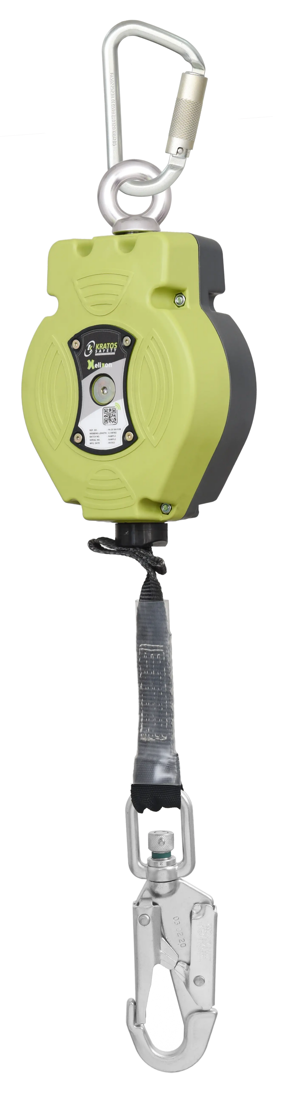 HELIXON Polyestergurtband ist ein Höhensicherungsgerät mit automatischem Rückzug und einer Länge von 3,5 m, ausschließlich für vertikale Einsätze konzipiert.