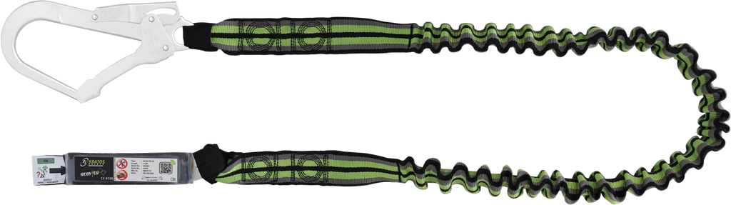 Verbindungsmittel aus elastischem Gurtband mit Falldämpfer 1,80 m mit KarabinerFA5020755 bietet sichere Befestigungslösungen für Arbeiten in Höhe. Das elastische Gurtband passt sich der Bewegung des Nutzers an, während der integrierte Falldämpfer Stöße reduziert. Länge gespannt: 1,80 m; Länge im Ruhezustand: 1,4 m. An einem Ende befindet sich ein Gerüsthaken mit doppelt wirkendem Automatikverschluss FA 50 207 55.