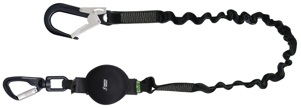 GRAVITY-S ist ein elastisches Gurtbandverbindungsmittel mit integriertem Falldämpfer und zwei Karabinern mit Automatikverschluss. Die Konstruktion sorgt für eine gleichmäßige Bewegungsführung, reduziert ruckartige Belastungen und erhöht die Sicherheit bei Arbeiten in der Höhe. Unter Spannung erreicht es eine Länge von bis zu 2 m, im Ruhezustand sind es ca. 1,50 m.
