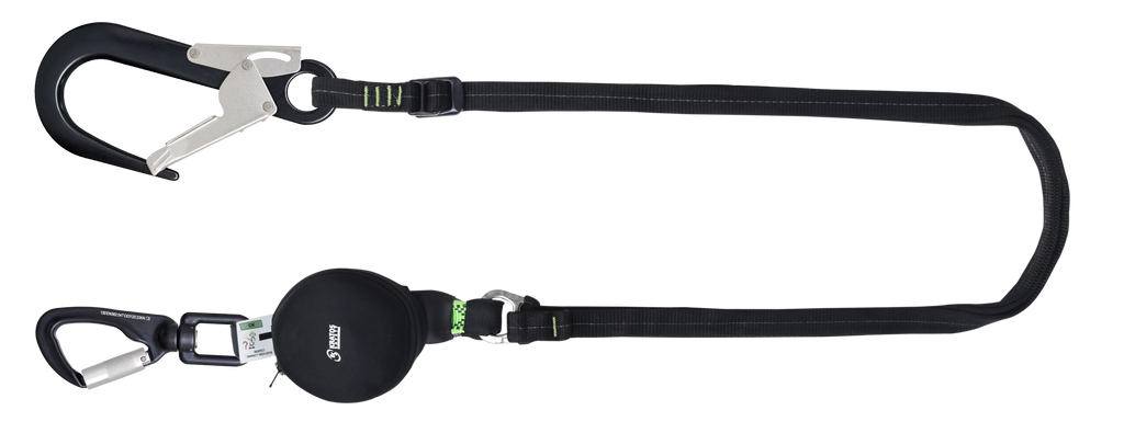 GRAVITY-S Kompakter Falldämpfer kombiniert zuverlässige Absturzsicherung mit flexiblem Verbindungsmittel. Der kompakte Falldämpfer arbeitet mit einem verstellbaren Gutband und erreicht eine maximale Länge von 2 Metern, perfekt für enge Arbeitsräume. Der Aluminium Karabiner sorgt für geringes Gewicht und hohe Haltbarkeit. Das System ist zugelassen für 140 kg und bietet sicheren Schutz bei scharfen Kanten.