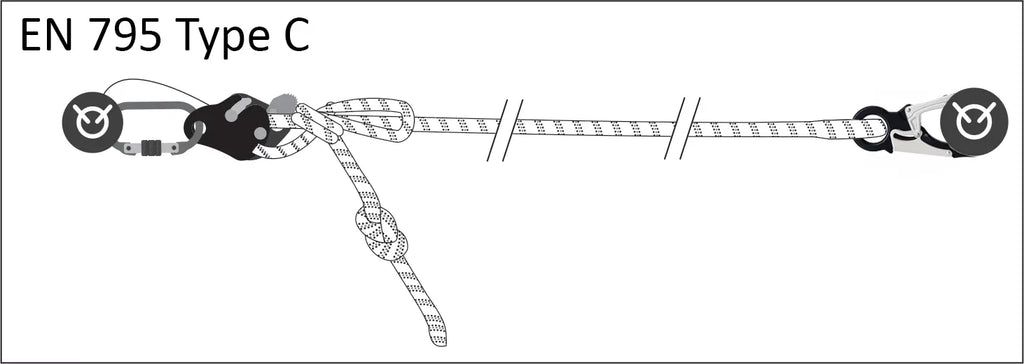 Vollständig einsatzbereit sollten Sie sich auf maximale Länge von 5 m verlassen. Das System enthält 1 Stahl-Karabiner mit Schraubverschluss FA 50 101 17 und 1 Aluminium-Karabiner.