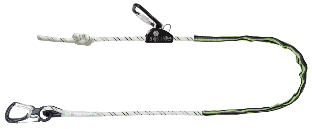 ASTRA Verbindungsmittel aus geflochtenem Seil max. 4 m zur Arbeitsplatzpositionierung max. 4 m mit Reibnocken-Seilkürzer und 2 Karabinern Öffnung 17 mm, davon einer mit Schraubverschluss