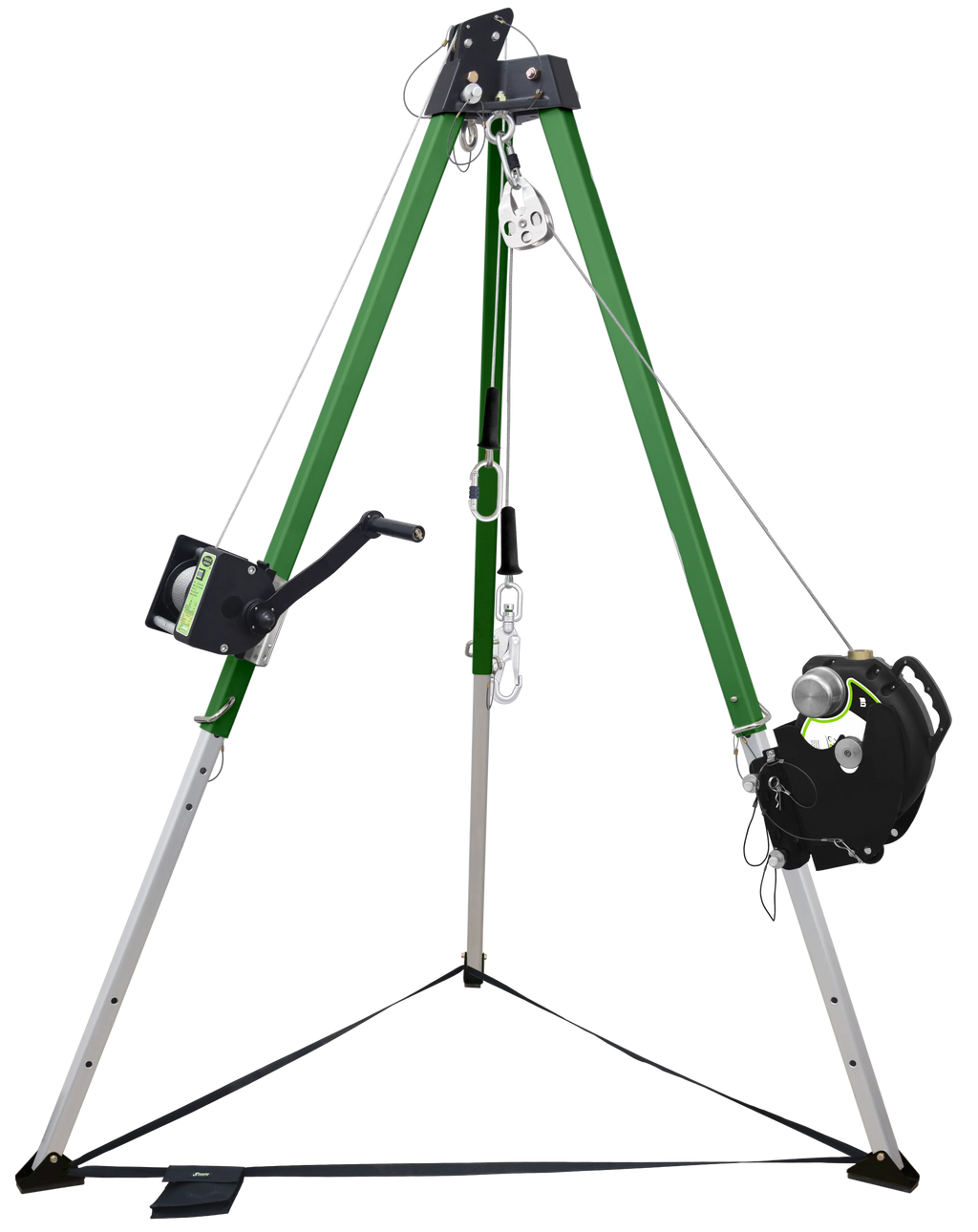 Mit einer Maximalhöhe von 2,15 m bietet das Dreibein auch in engen Bereichen eine sichere Arbeitsumgebung. Die robuste Konstruktion sorgt für Langlebigkeit und Zuverlässigkeit im Dauereinsatz.