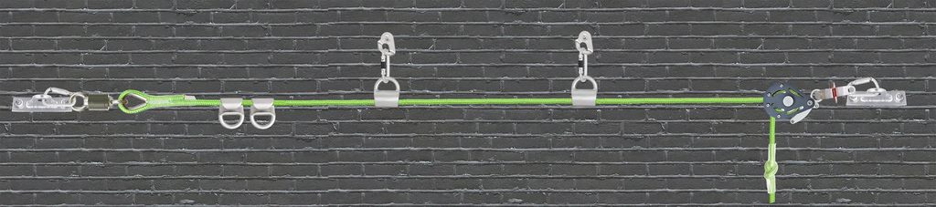 CROSS LINE 2 - Horizontale temporäre Seilsicherung über 45 m für 1–4 Personen mit 4 Seilgleitern