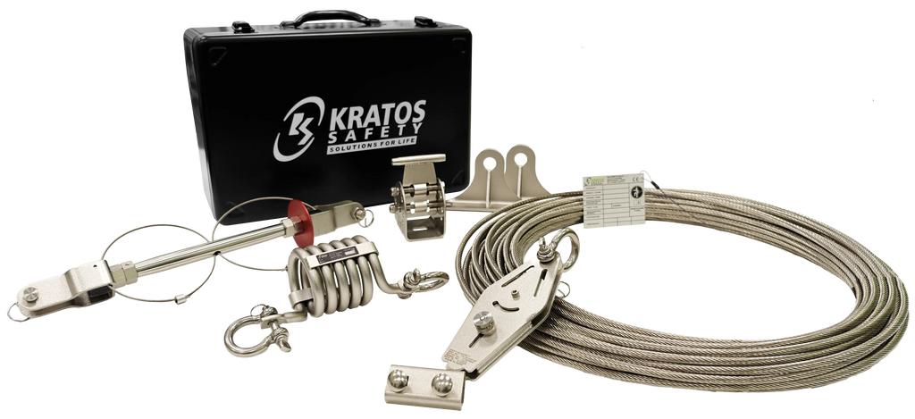 Kit KS-Line (16-30 m) bietet ein einsatzfertiges Set für die sichere Seil- und Anschlageinrichtung KS 4000. Das kompakte System enthält alle Bauteile für eine schnelle Montage vor Ort.