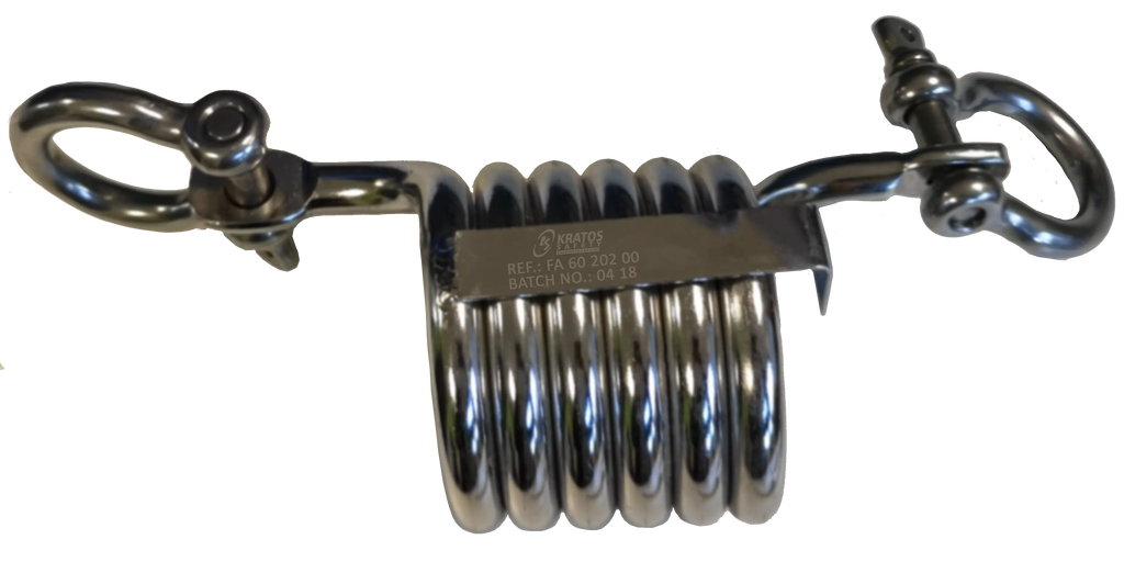 Der KS 4000 Falldämpfer kombiniert Edelstahl mit ABS-Gehäuse, ist robust und zuverlässig, wiegt 1,64 kg und wird inklusive zwei Schäkel geliefert.