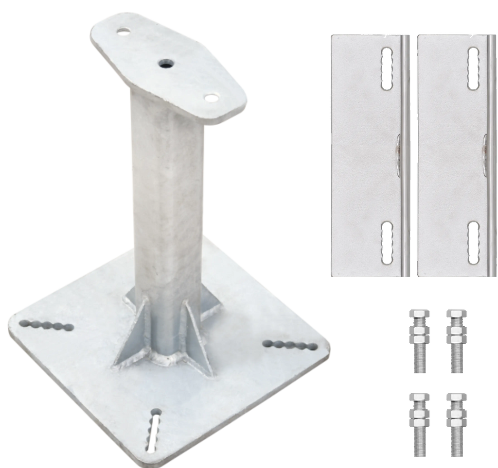 Set starrer Pfosten (Höhe 300 mm) aus verzinktem Stahl mit Klemmplatten für horizontale Kabelsicherung KS 4000