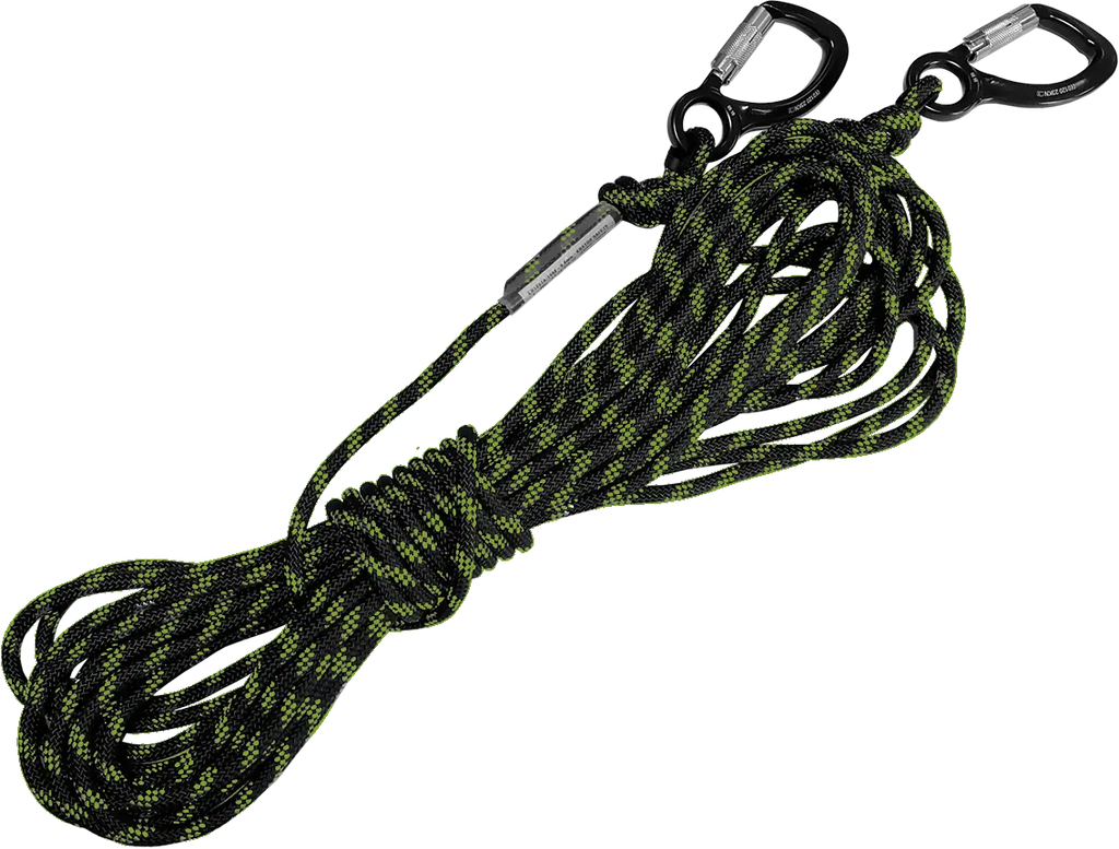 Kernmantelseil für RESC-U oder LiftRes-Q kombiniert hohe Belastbarkeit mit kompakter Bauweise. Dieses 20 m Set besteht aus dem Halbstatischen Kernmantelseil Ø 9,6 mm FA 70 109 XX, 2 Schlaufen und 2 Aluminiumkarabinern FA 50 220 21. Gewicht: 1,71 kg. Konformität: EN 1891:1998 Type A.