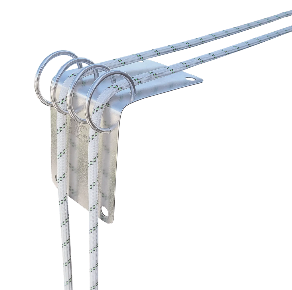 Der Kantenschutz schützt das Seil vor Abrieb an einer Kante und erhöht die Lebensdauer der Anlage. Im Winkelbereich verhindern integrierte Führungsringe, dass sich Führungen an der Kante verheddern.