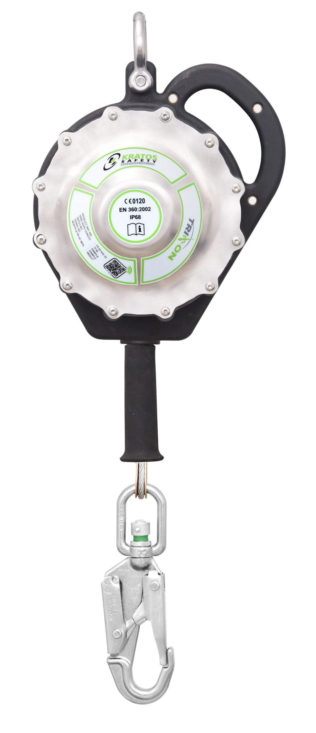 TRITON dicht ist ideal für Dacharbeiten, Industriebau oder Montagearbeiten in Höhen. Das System lässt sich sicher an einem Harness befestigen und führt das Drahtseil kontrolliert ein- und aus, sodass Sicherheitsabstände eingehalten werden.