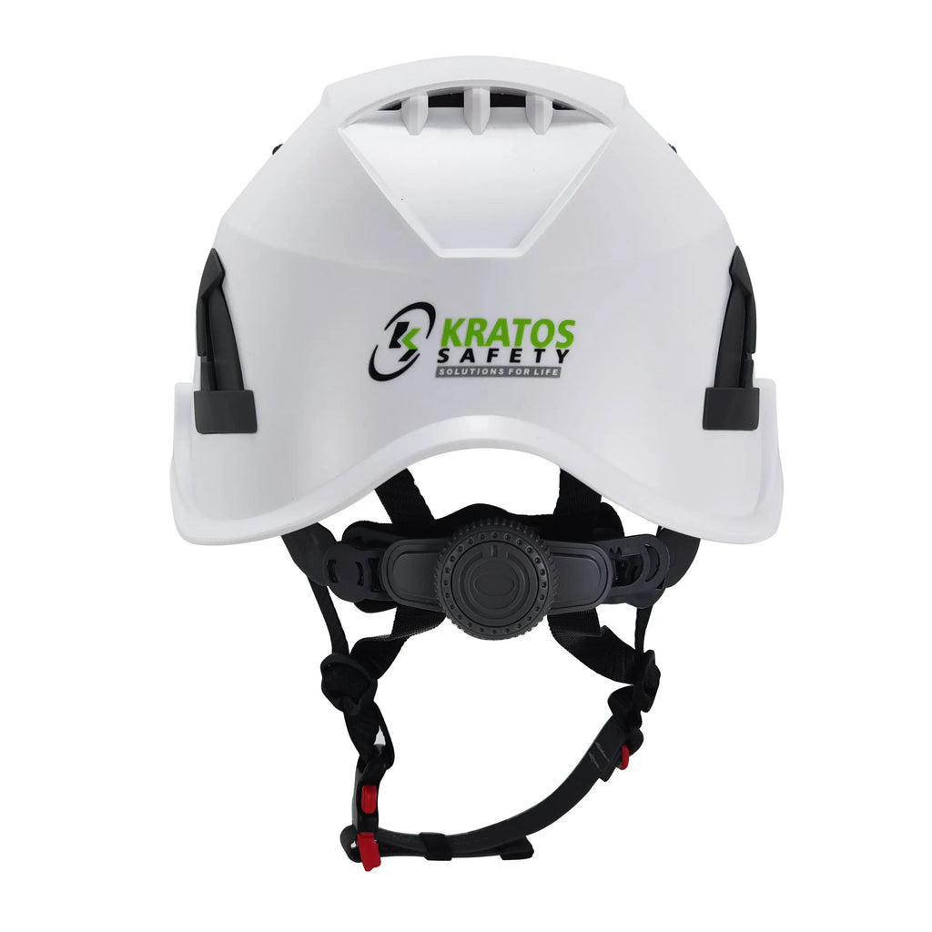Der Schutzhelm verfügt über ein Textilkopfband, verstellbaren Kinnriemen, acht Belüftungsschlitze für mehr Komfort und einen Drehradverschluss, der sich sicher an jede Kopfform anpasst.