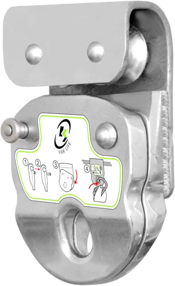 Seilgleiter Öffnenbar ermöglichen eine sichere, ergonomische Handhabung von horizontalen Anschlageinrichtungen. Das KS-Line Modell KS4000 bietet eine robuste Öffnung, eine zweifache Sicherung und eine integrierte Rollenführung für fließende Bewegungen.