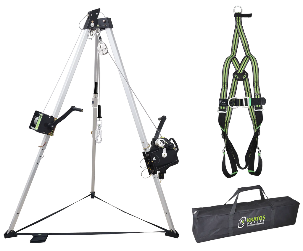 Dieses Kit eignet sich optimal für enge Räume, Schächte und Korridore, in denen der Platz knapp ist. Das Set sorgt mit dem Zweipunktauffanggurt am Körper für sichere Absturzsicherung, ergänzt durch das KALYPSO Höhensicherungsgerät mit Polymergehäuse und einem verzinkten Stahlseil sowie integrierter Rettungswinde von 20 m. Die Referenzen FA 10 106 002 bzw. FA 20 401 203 ermöglichen eine eindeutige Zuordnung. Zusätzlich enthält es ein Dreibein (7 ft) zur stabilen Positionierung.