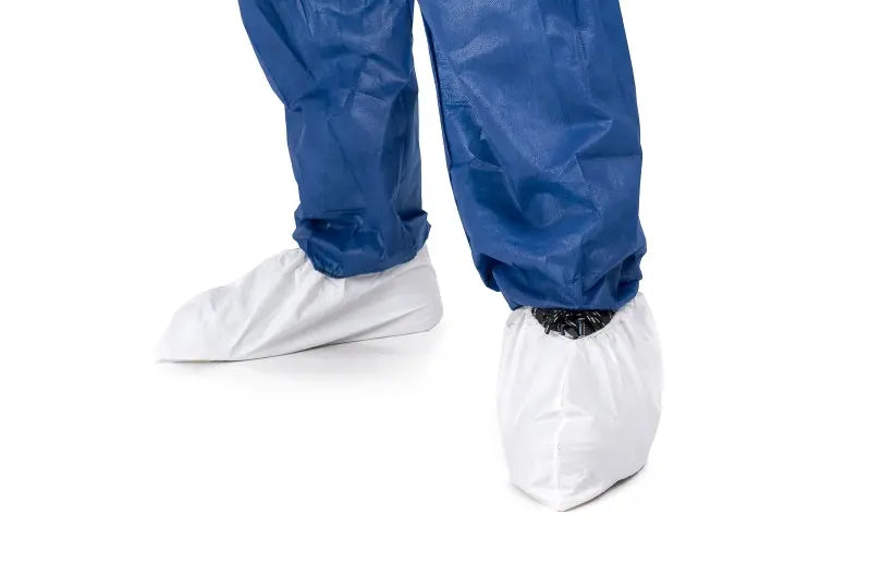 LeiKaTech® Einweg-Überziehschuh aus PP-Spinnvlies mit mikroporösem Filmlaminat weiß 60 g / m² Einheitsgröße (36 x 16 cm) mit Gummizug an den Knöcheln PSA Kategorie I