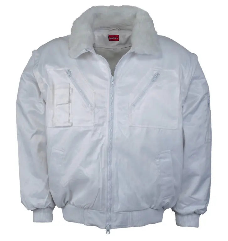 aus robustem Oberstoff / wasserabweisend heraustrennbares Faserpelzfutter abnehmbarer Faserpelzkragen + abnehmbare Ärmel Thermofutter in den Ärmeln 2-Wege-Reißverschluss aufgesetzte Handytasche mit Riegel + Klettverschluss 2 Brusttaschen mit Reißverschluss + 2 Seitentaschen + 1 Innentasche 1 Ärmeltasche mit Reißverschluss und aufgesetzter Stifttasche Strickbundabschluss an den Ärmeln und Taille Obermaterial: 60 % Baumwolle + 40 % Polyester Futter: 100 % Polyester Faserpelz: 70 % Polyacryl + 30 % Polyester Farbe: weiß