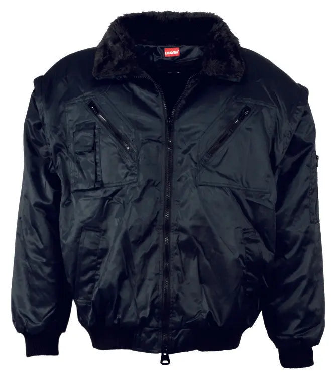 aus robustem Oberstoff / wasserabweisend heraustrennbares Faserpelzfutter abnehmbarer Faserpelzkragen + abnehmbare Ärmel Thermofutter in den Ärmeln 2-Wege-Reißverschluss aufgesetzte Handytasche mit Riegel + Klettverschluss 2 Brusttaschen mit Reißverschluss + 2 Seitentaschen + 1 Innentasche 1 Ärmeltasche mit Reißverschluss und aufgesetzter Stifttasche Strickbundabschluss an den Ärmeln und Taille Obermaterial: 60 % Baumwolle + 40 % Polyester Futter: 100 % Polyester Faserpelz: 70 % Polyacryl + 30 % Polyester Farbe: schwarz