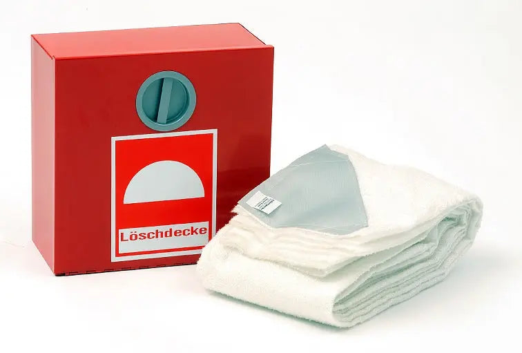 Löschdeckenbehälter aus verzinktem Stahlblech mit unterer Klappe und Halteriemen- Behältermaße 30,5 x 30,5 x 15,0 cm- Aufschrift "Löschdecke"- OHNE Löschdecke