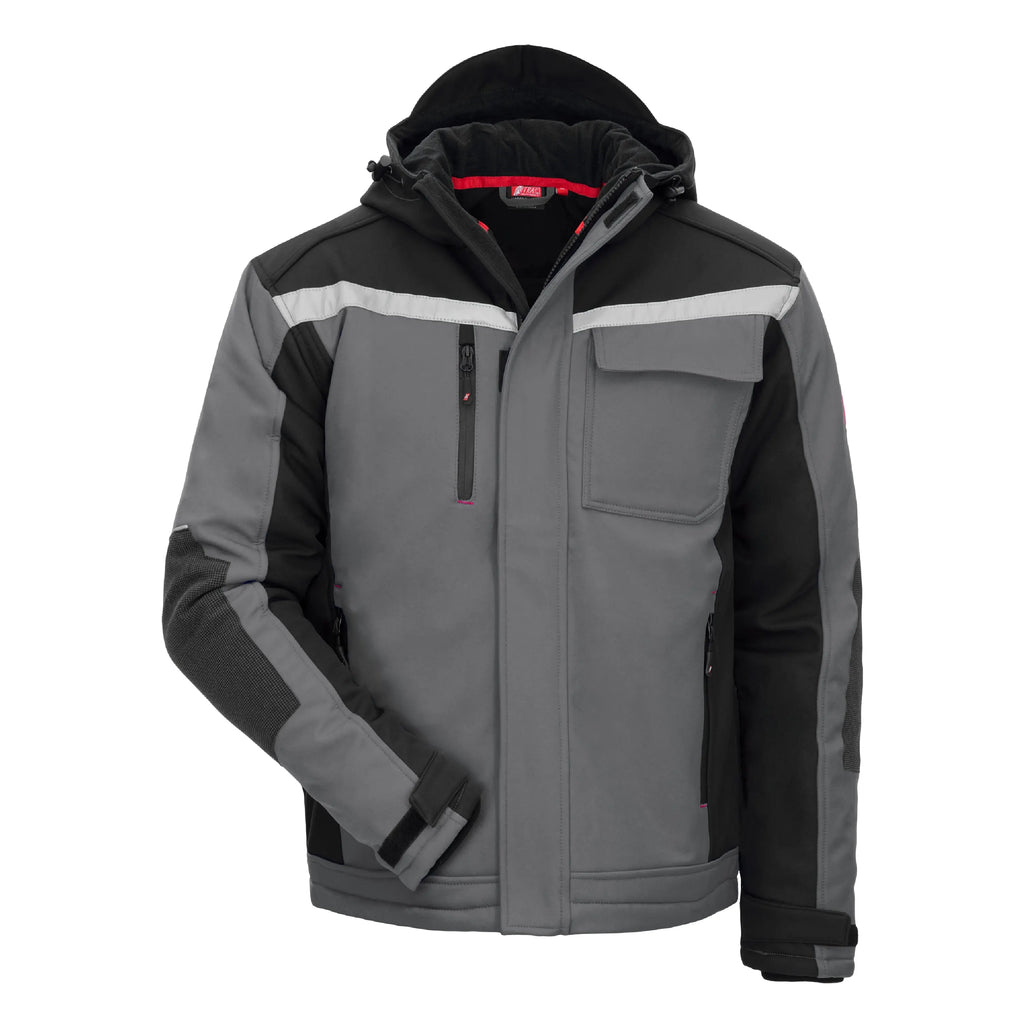 NITRAS MOTION TEX PLUS, Winterjacke, grau / schwarz (Farbcode: 1210), 340 g/qm, hoher Tragekomfort dank weichem Softshell-Material mit wasser- und windabweisenden Eigenschaften und verlängertem Rücken, verstellbare Ärmelabschlüsse mit Klettverschluss und Kordelzug im Saum für optimalen Sitz und Halt, weiches und wärmendes Winterfutter, Verstärkungen an Ellbogenpartie für hohe Widerstandsfähigkeit, Reflexelemente für bessere Sichtbarkeit, Stehkragen, durchgehender YKK-Reißverschluss mit Kinnschutz und Windstopper innen und außen, Innen-, Brust- und Seitentaschen, Pulswärmer für kältere Temperaturen, Kapuze mit Kordelzug zur Fixierung, Oberstoff: Wassersäule: 8.000 mmH2O / Atmungsaktivität: 3.500 g/qm/24h, Comfort Fit