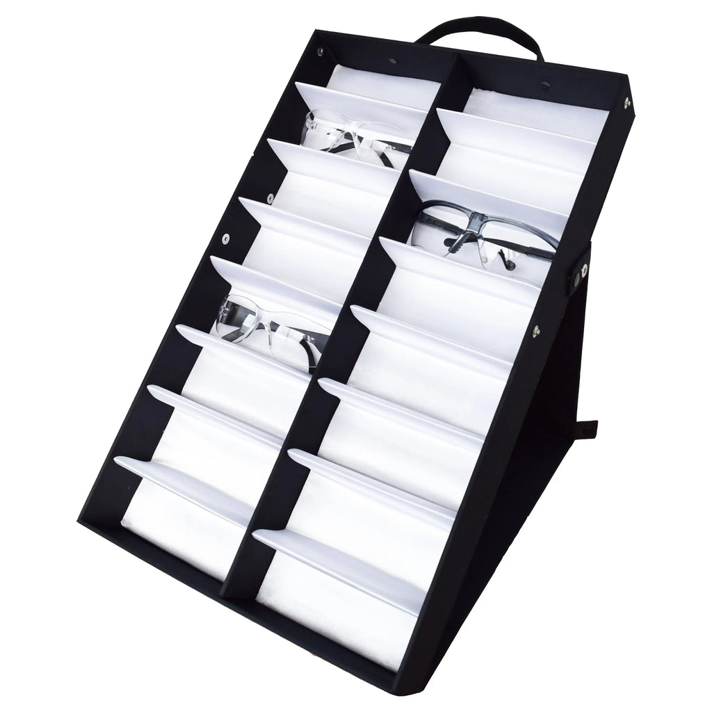 NITRAS Präsentationsbox für Schutzbrillen, Textil / Kunststoff, schwarz / weiß (Farbcode: 1011), mit Tragegriff, Druckknopf-Verschlüsse, Fassungsvermögen 16 Schutzbrillen, Abmessungen 52 x 32 x 7 cm, für den sicheren Transport von Schutzbrillen, kann zu Präsentationszwecken auch als Thekendisplay aufgebaut werden, wird ohne Inhalt geliefert